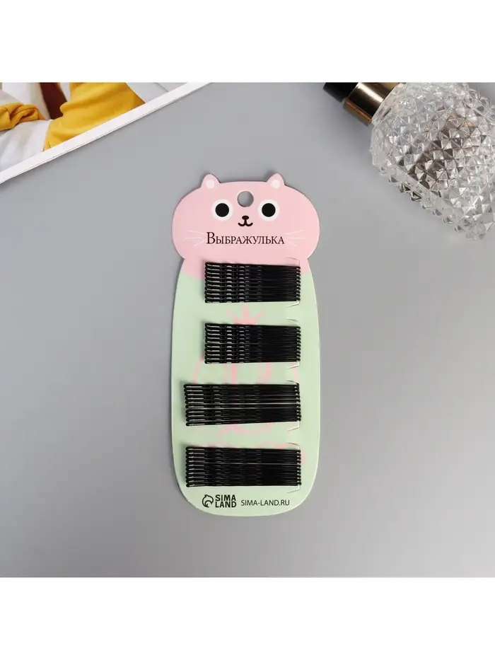 Невидимка для волос «Глория», набор 40 шт., котик, 5.5 и 4.5 см, чёрная