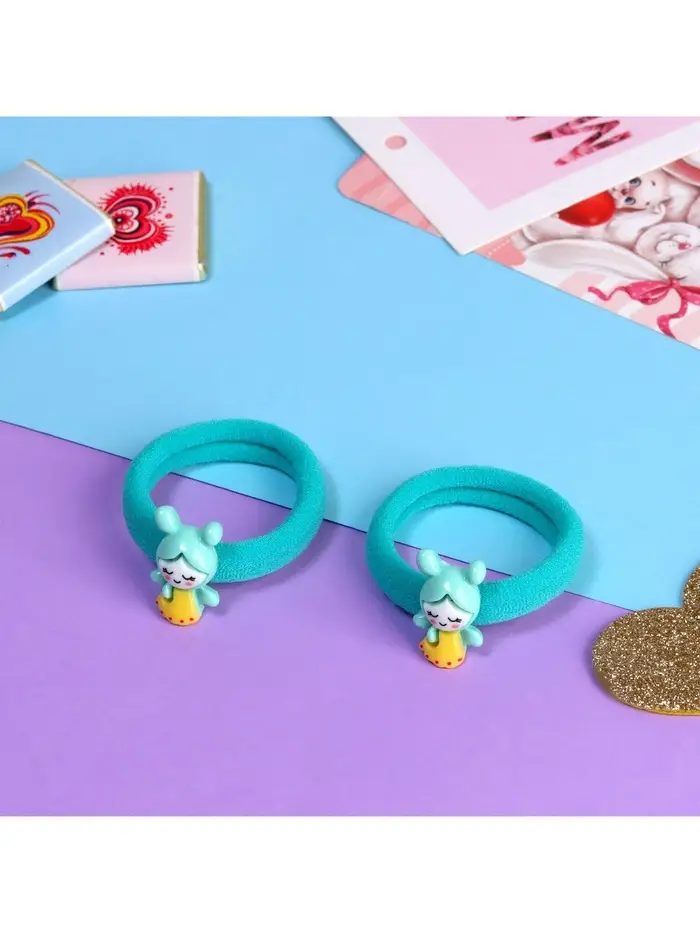 Резинка для волос «Маленькая радость», набор 2 шт., пчёлка, 3.5 см, зелёная
