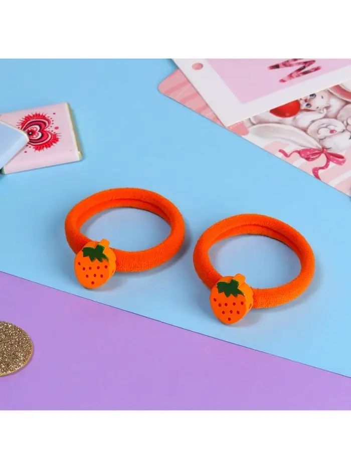 Резинка для волос «Летнее настроение», набор 2 шт., клубничка, 3.5 см, оранжевая