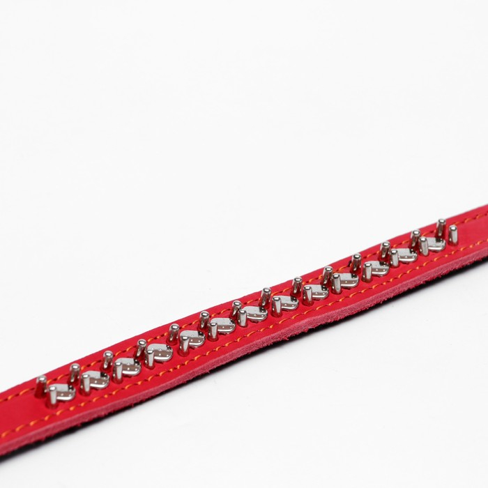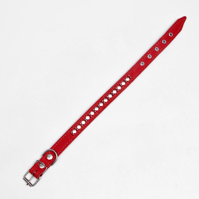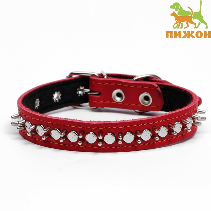 Ошейник кожаный на синтепоне "Ёж", 56 х 2.5 см, ОШ 35-45 см, красный