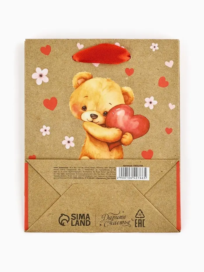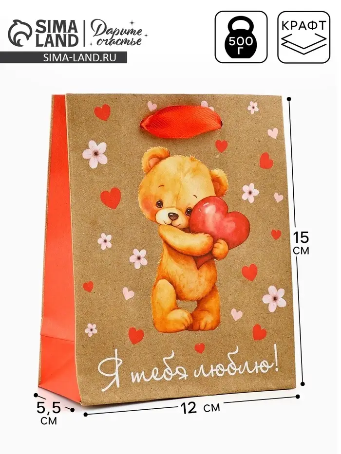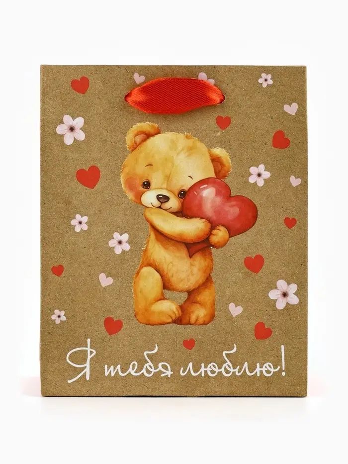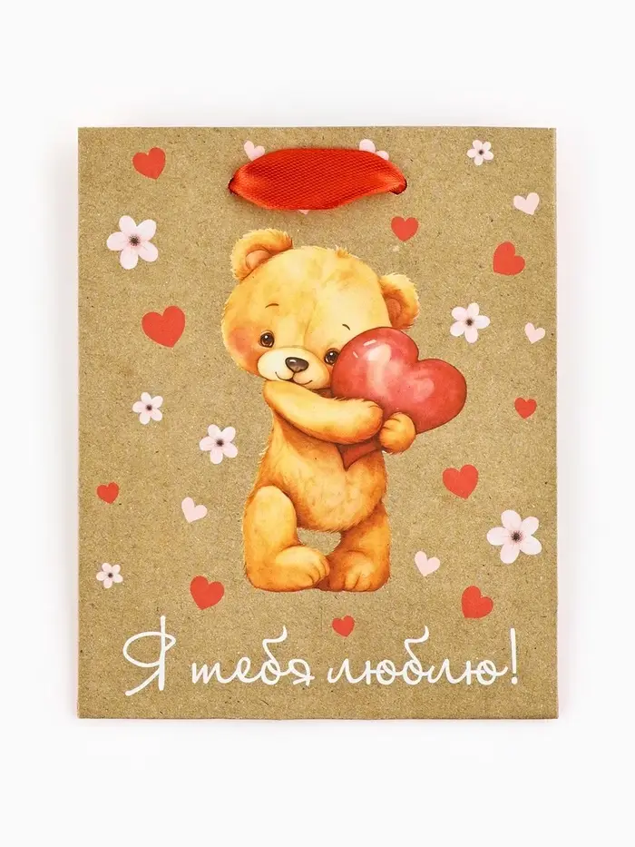 Пакет подарочный крафтовый «Люблю», S 12 х 5.5 х 15 см