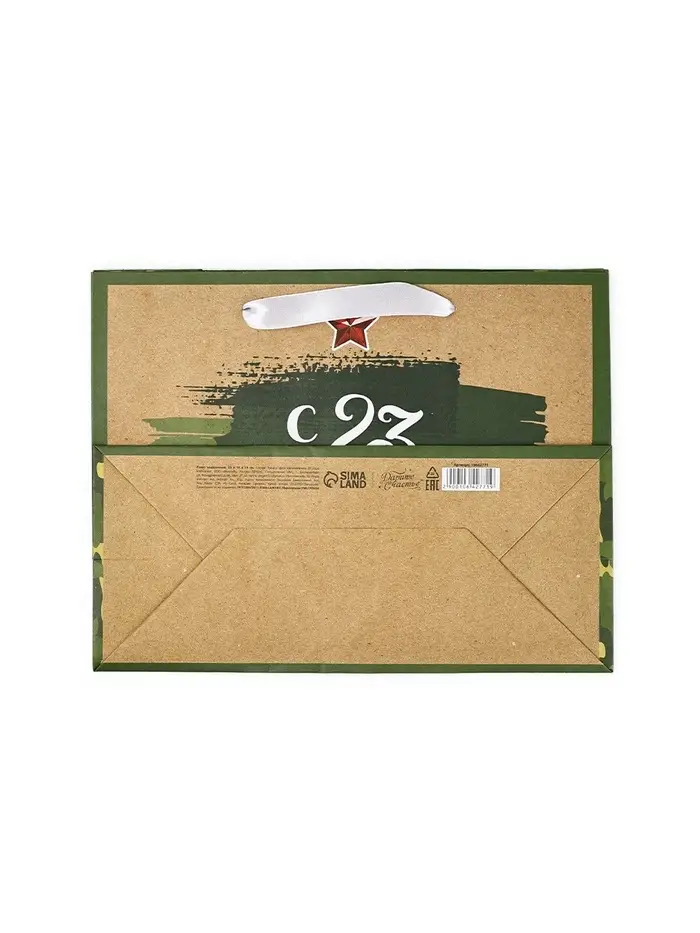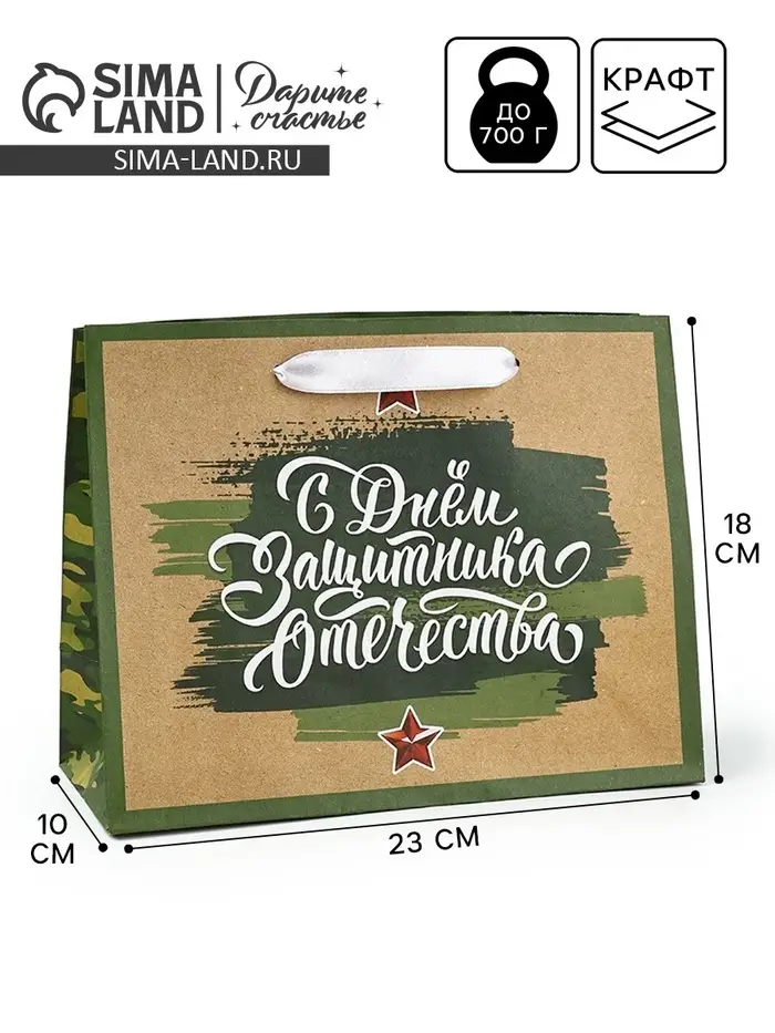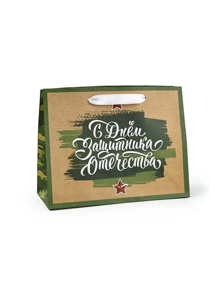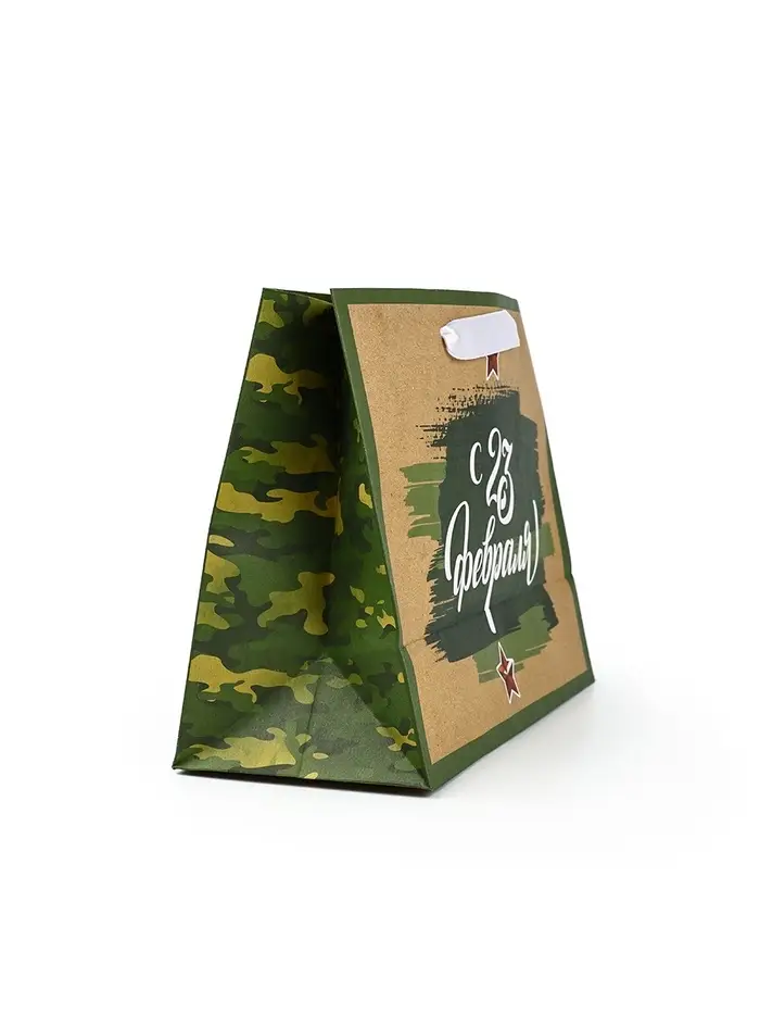 Пакет подарочный крафтовый «23 февраля», MS 18 х 10 х 23 см