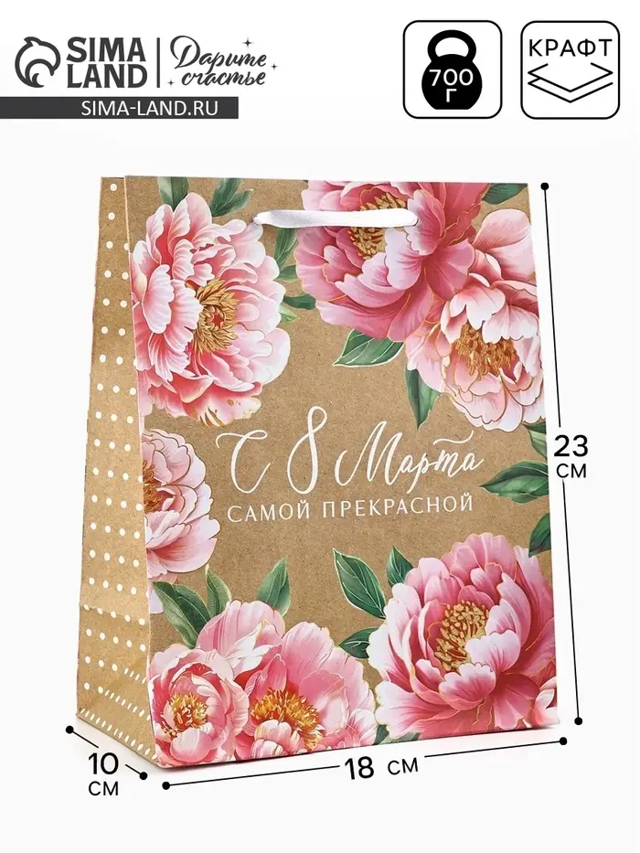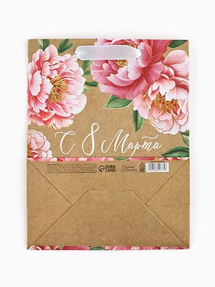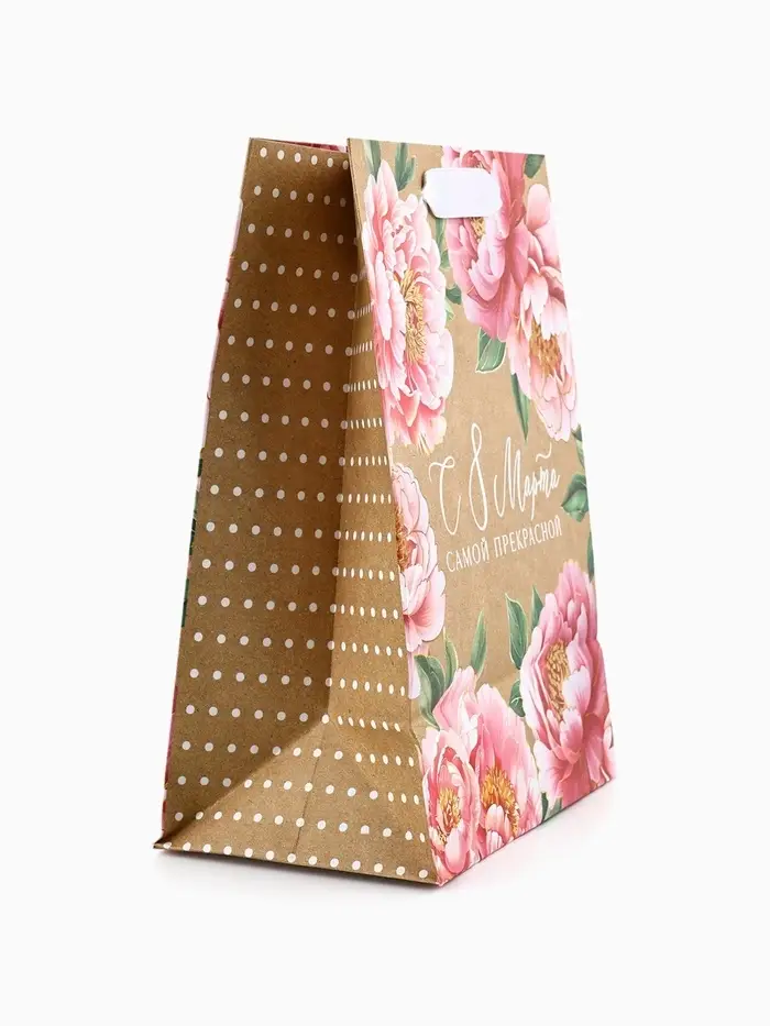 Пакет подарочный крафтовый «8 марта», MS 18 х 10 х 23 см