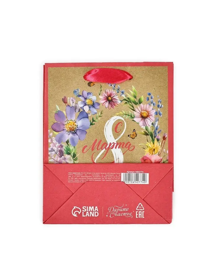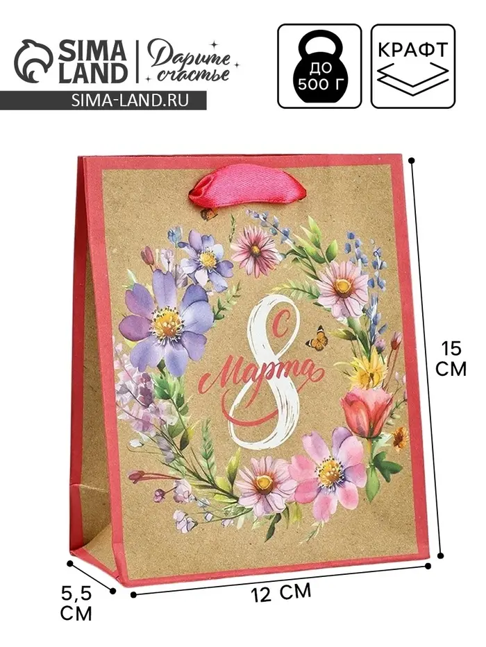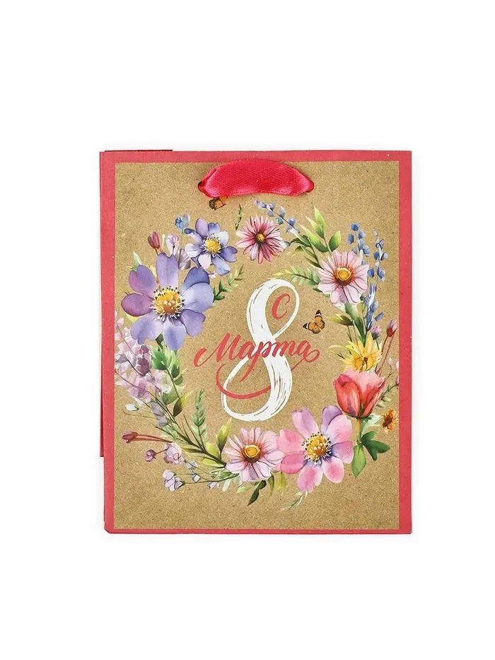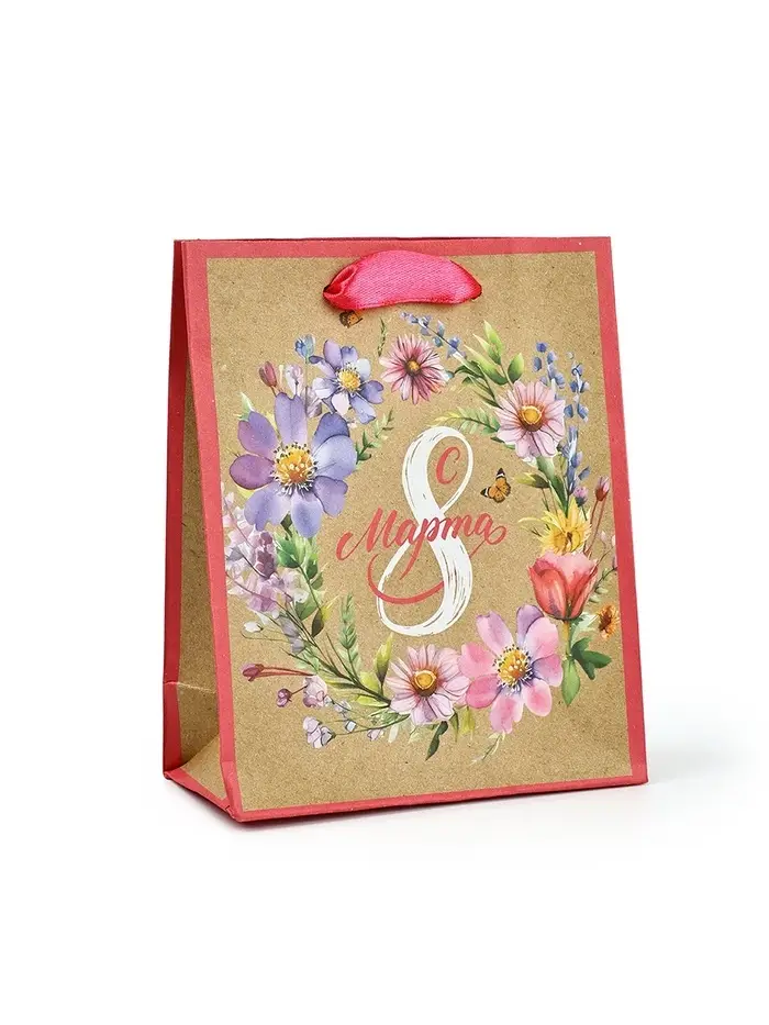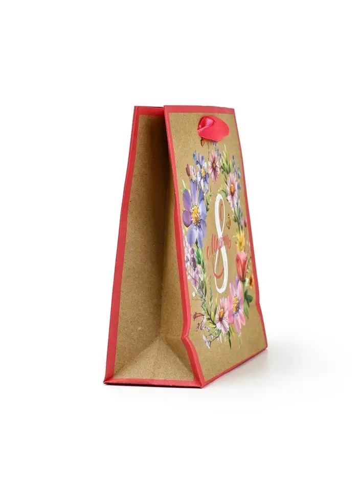 Пакет подарочный крафтовый «8 марта», S 12 х 5.5 х 15 см