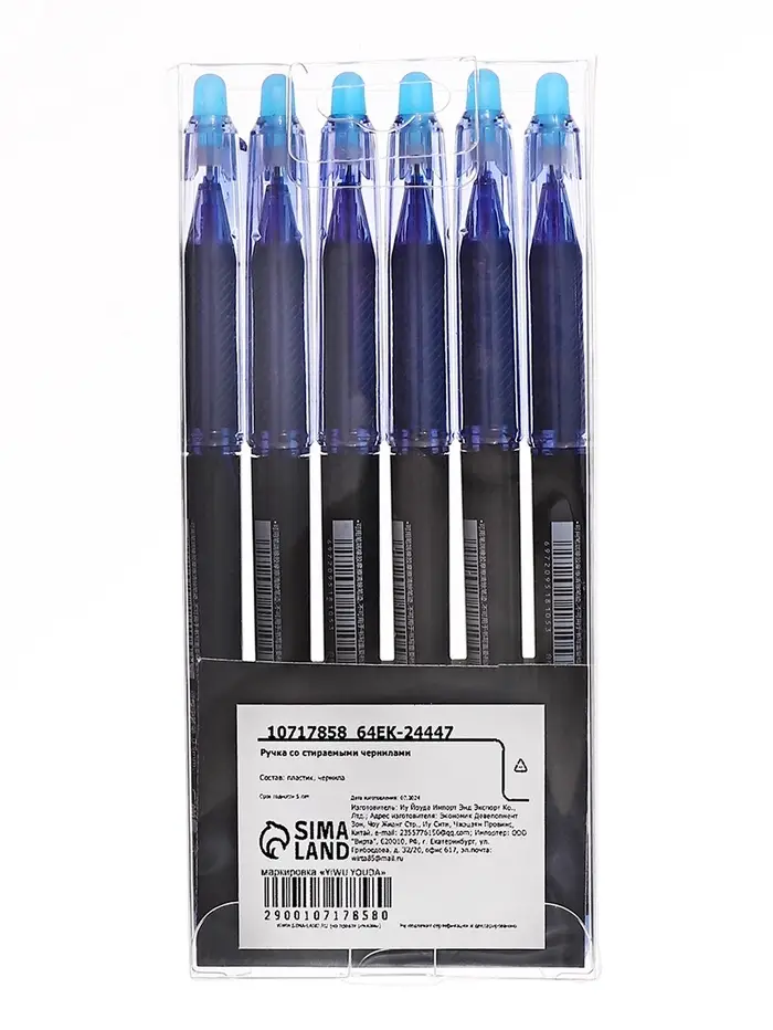 Ручка гелевая автомат СТИРАЕМЫЕ ЧЕРНИЛА, 0,5 мм, стержень синий, резин. держ., корпус Черный 10717