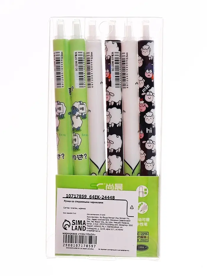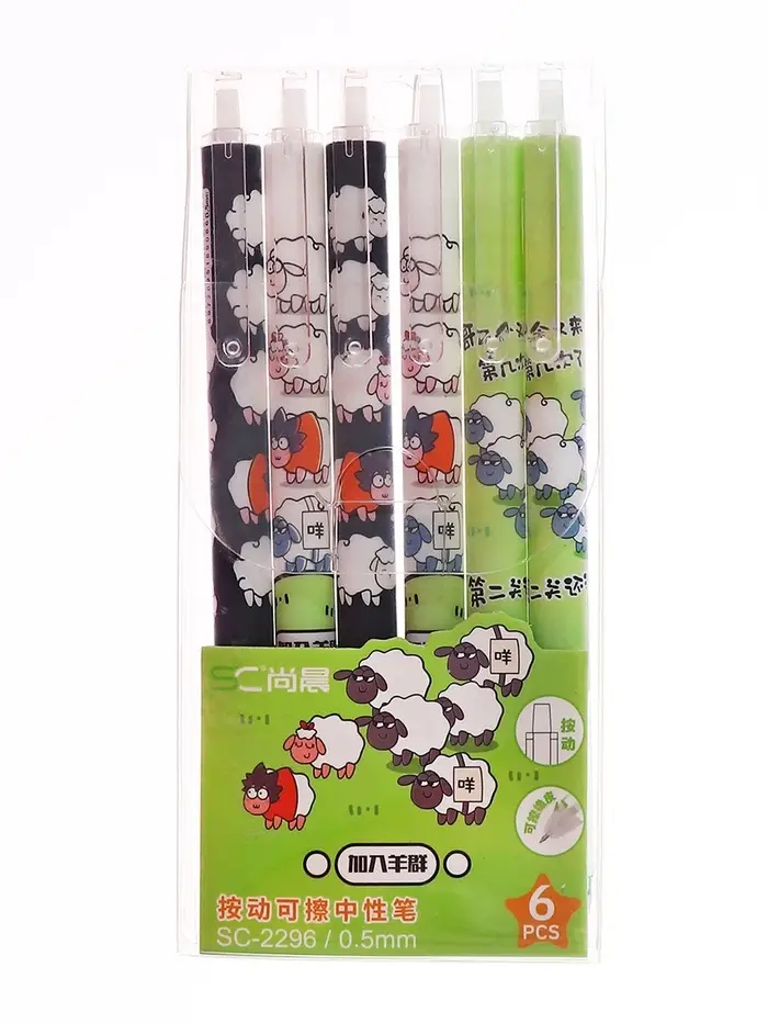 Ручка гелевая автомат СТИРАЕМЫЕ ЧЕРНИЛА, 0,5 мм, стержень синий, Овечки МИКС