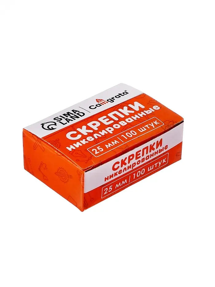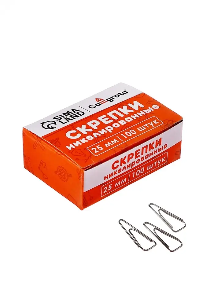 Скрепки 25мм никелированные в картонной коробке 100 штук, загнутые