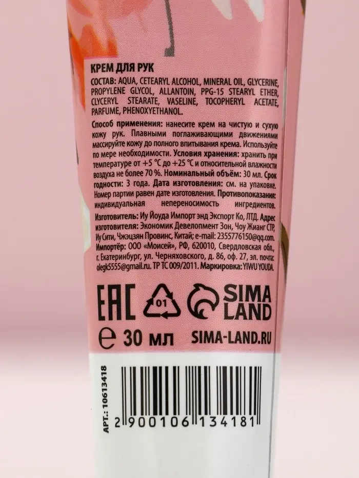 Крем для рук смягчающий, 30 мл, бархатная кожа, Чистое счастье