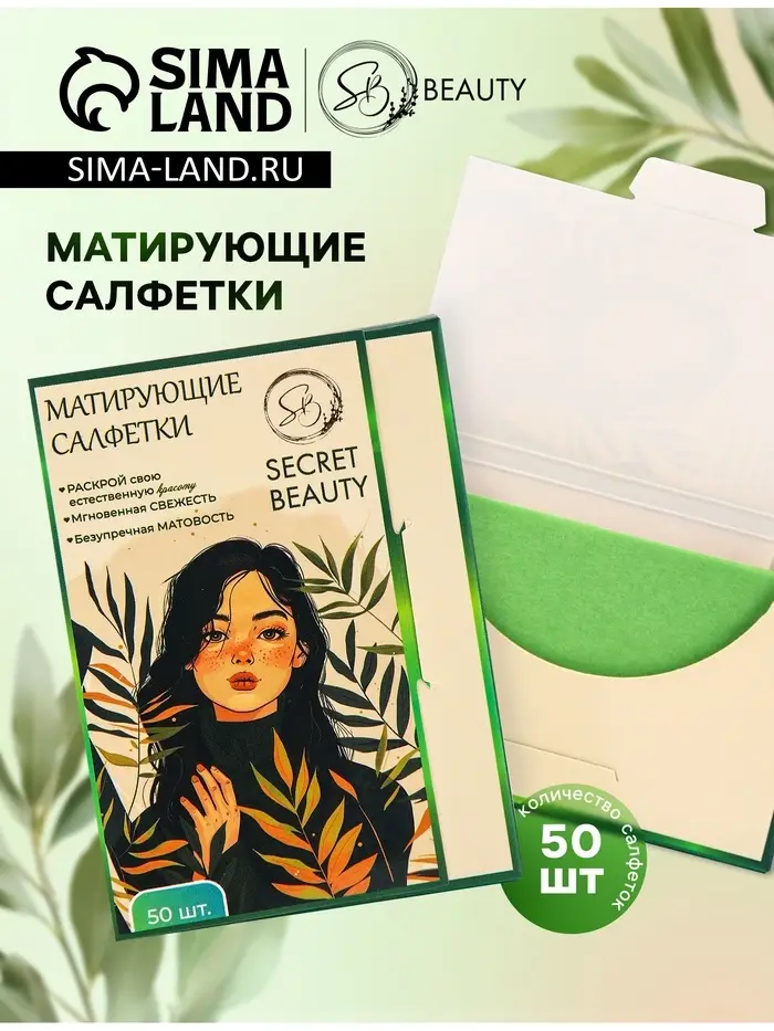 Матирующие салфетки Secret Beauty, 50 шт., зелёные