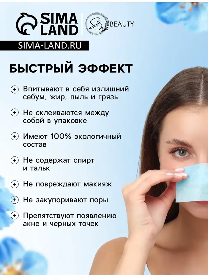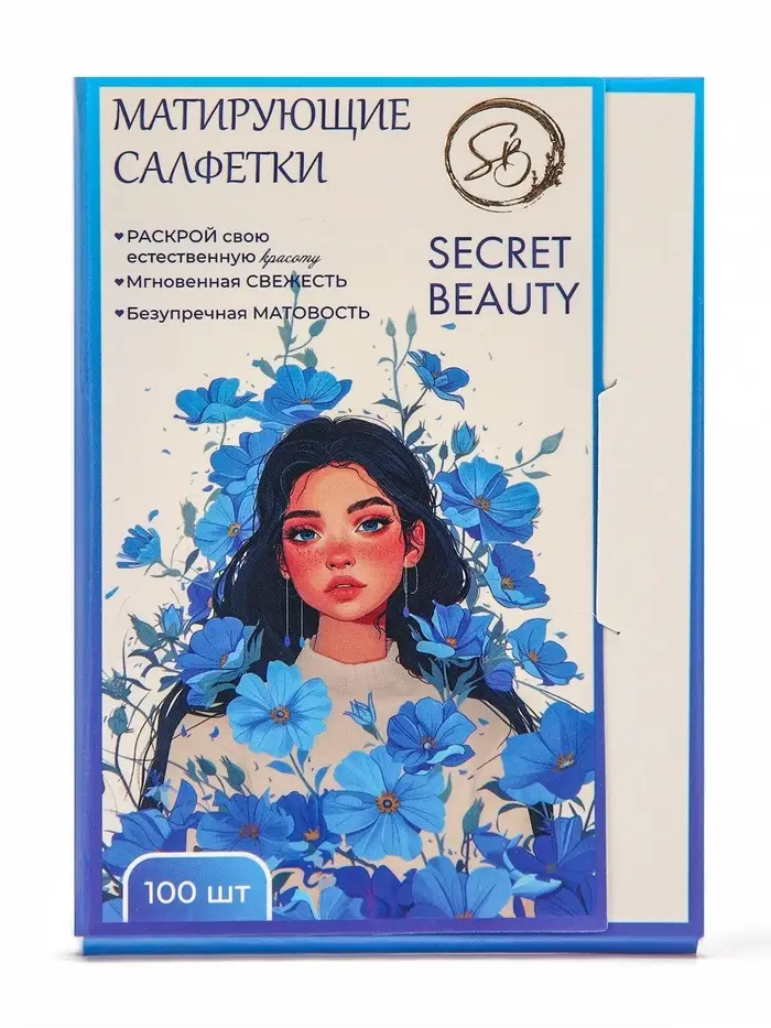 Матирующие салфетки Secret Beauty, 100 шт., синие