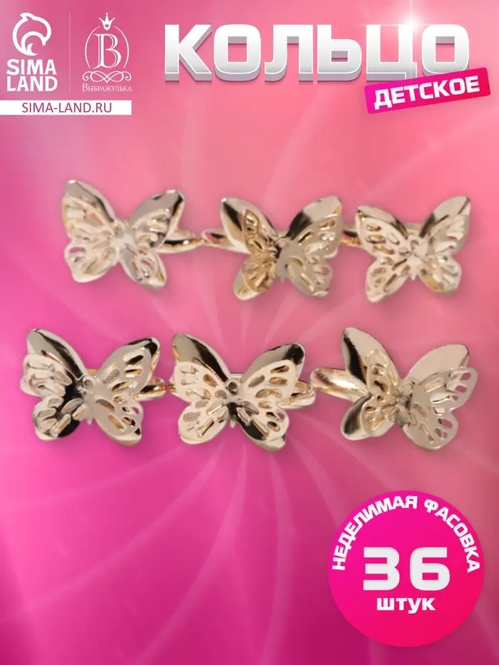 Погрузите свою маленькую модницу в мир волшебства и красоты с очаровательным кольцом в форме бабочки! Это безразмерное кольцо, выполненное из бижутерного сплава с золотистым оттенком, станет идеальным аксессуаром для девочек, которые любят яркие и стильные украшения.