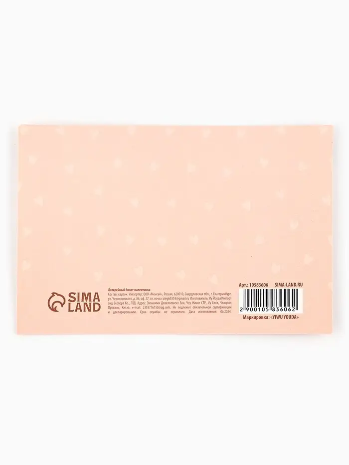 Открытка, лотерейный билет «Лотерея любви», 10×15 см