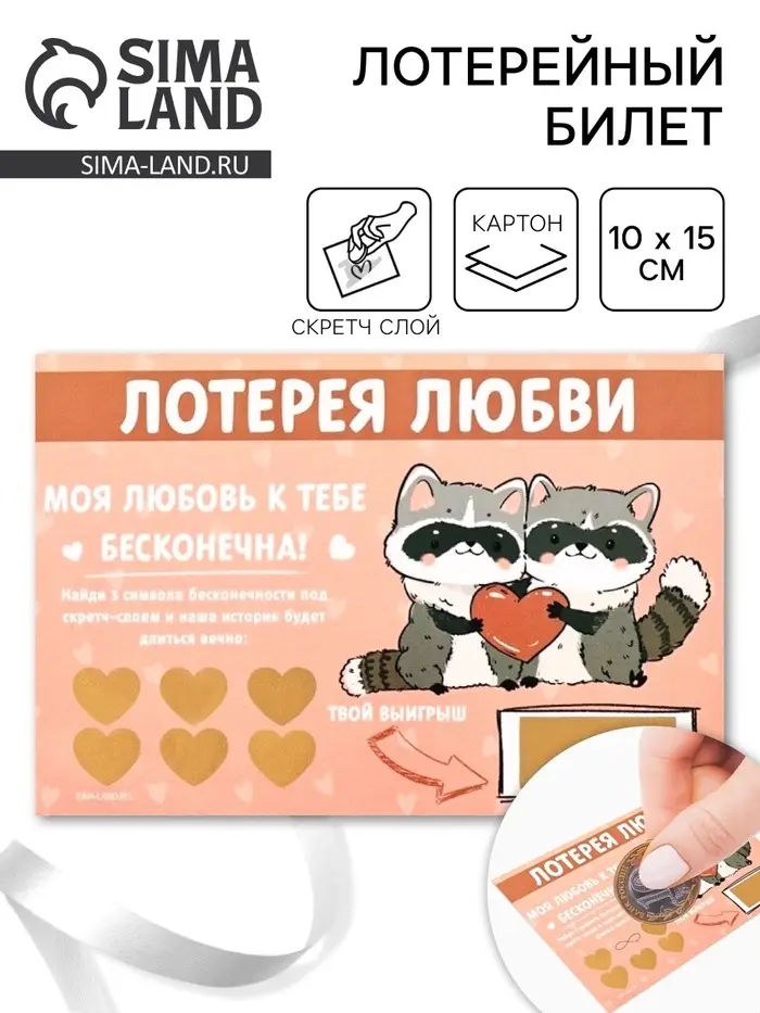 Открытка, лотерейный билет «Моя любовь бесконечна», 10×15 см