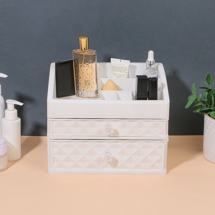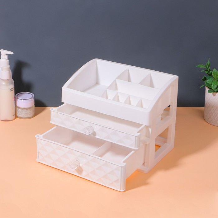 Органайзер для хранения маникюрных/косметических принадлежностей, 8 секций, 2 ящика, 25 × 16,5 × 20 см, цвет белый