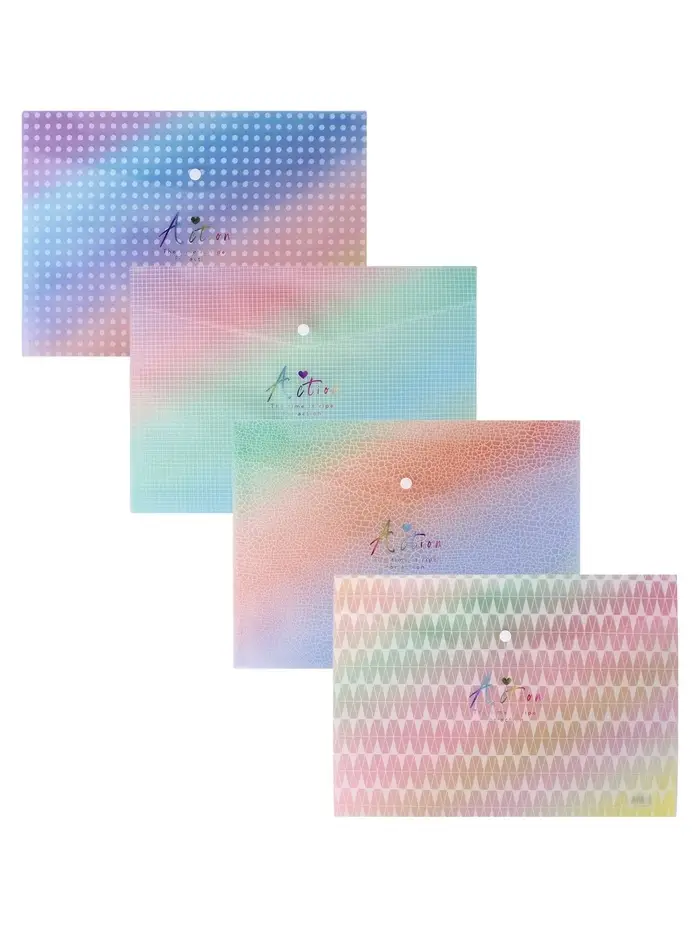 Папка-конверт на кнопке формат А4 180мкр блестящая МИКС Структура (штрихкод на штуке)