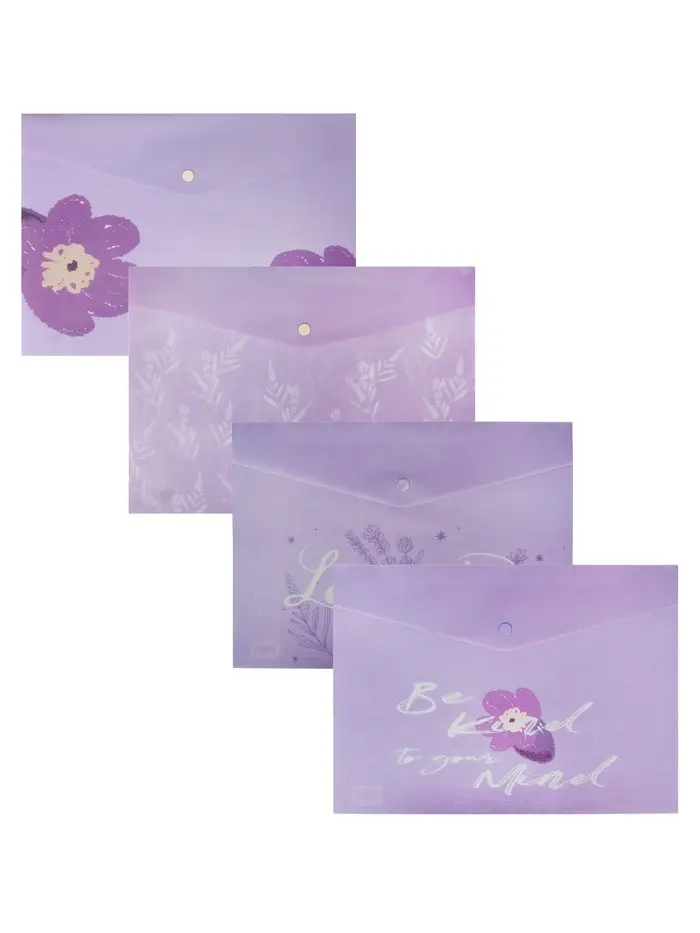 Папка-конверт на кнопке формат А4 180мкр блестящая МИКС Сиреневый стиль (штрихкод на штуке) 10843