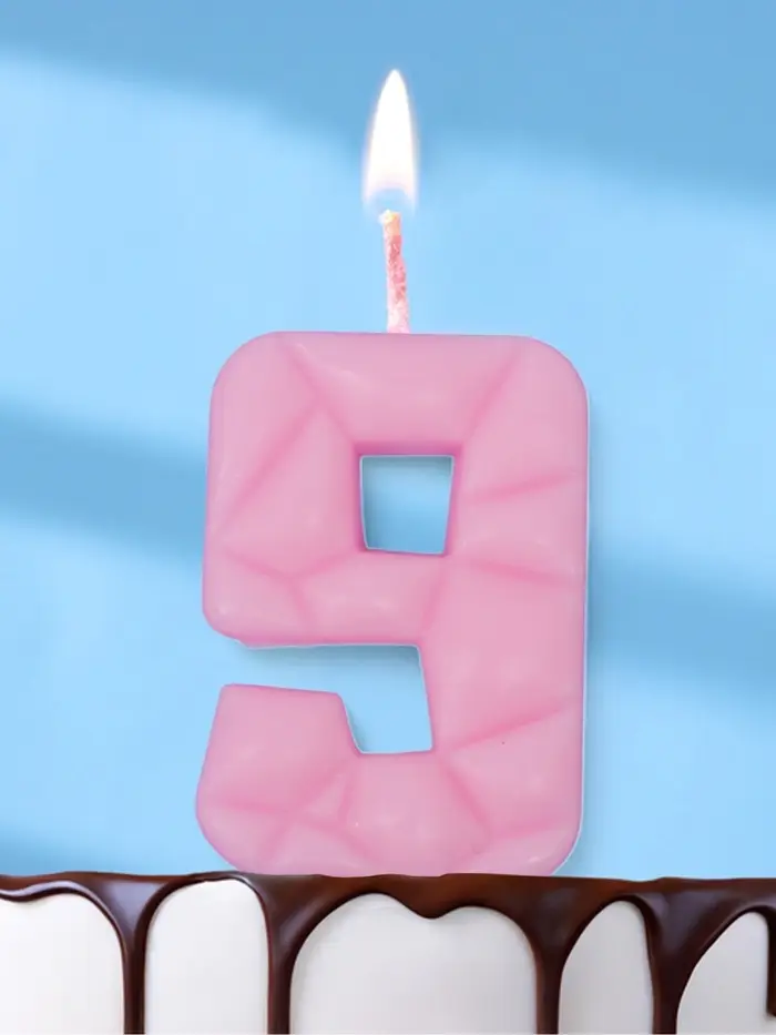 Свеча для торта «Цифра 9», светло-розовая
