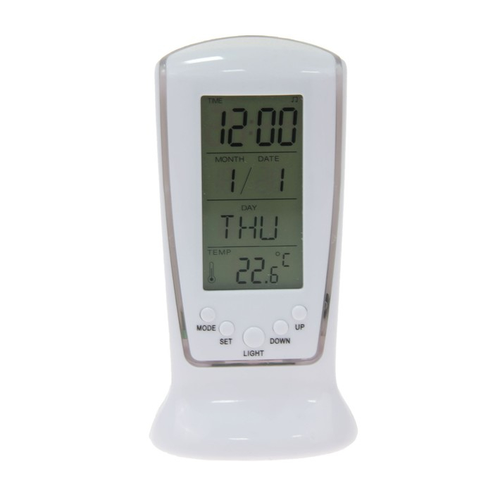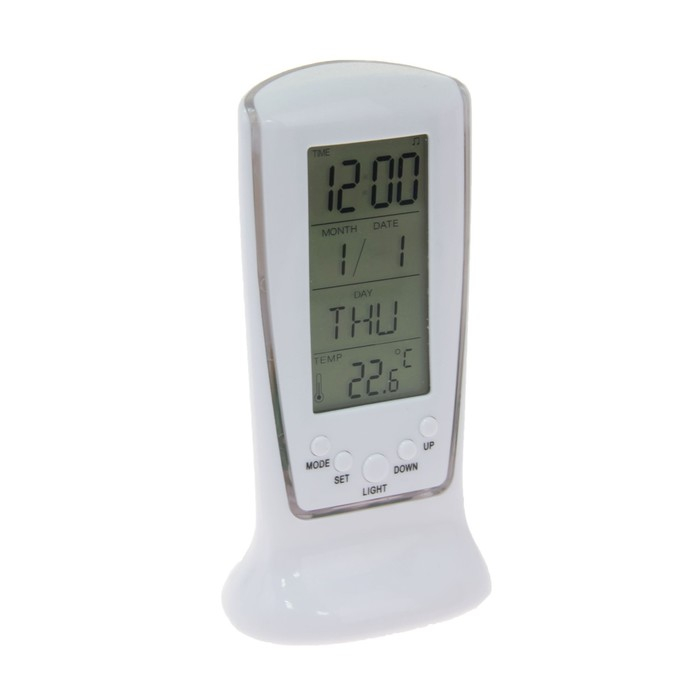 Будильник Luazon LB-02 "Обелиск", часы, дата, температура, подсветка, белый