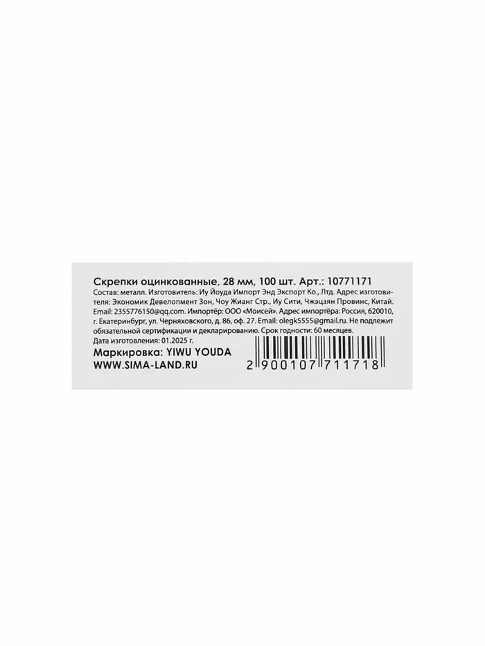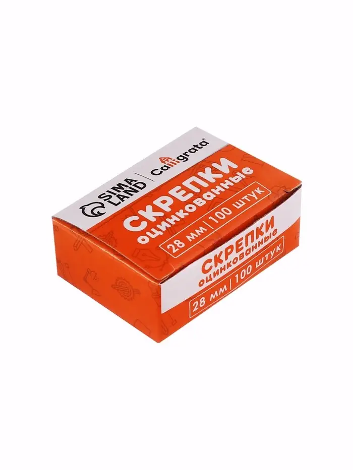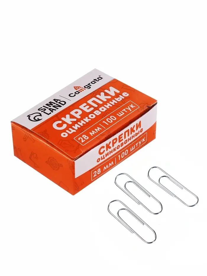 Скрепки 28мм оцинкованные в картонной коробке 100 штук