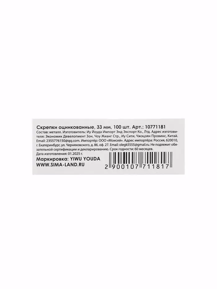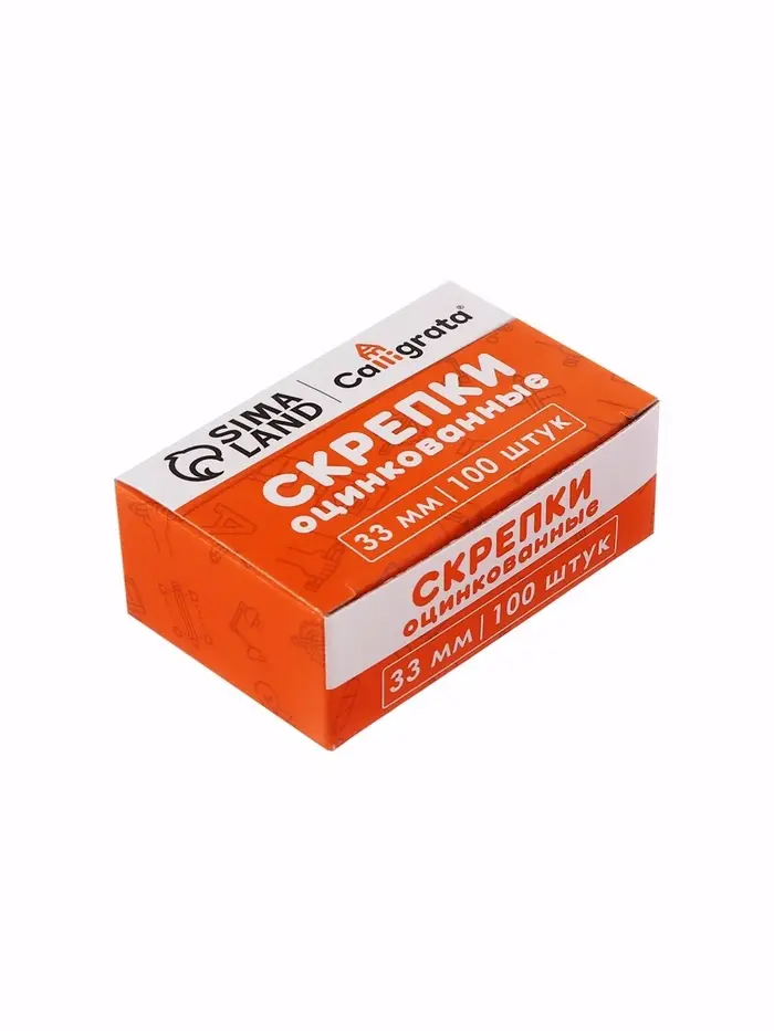 Скрепки 33мм оцинкованные в картонной коробке 100 штук, загнутые