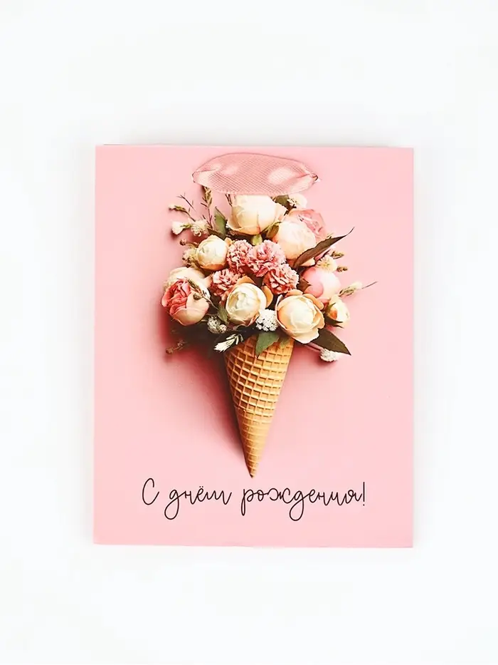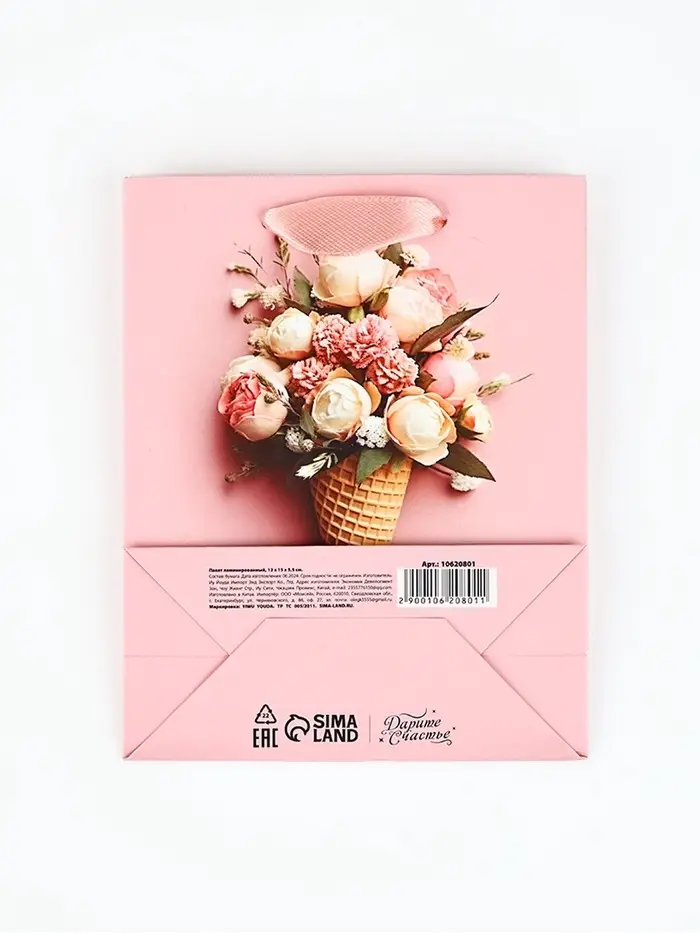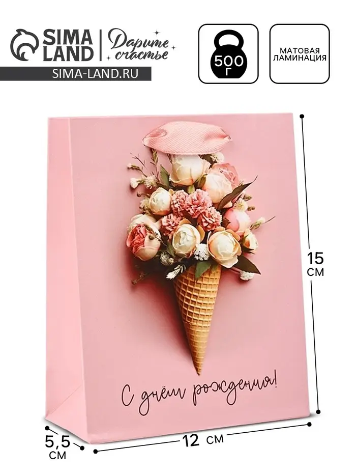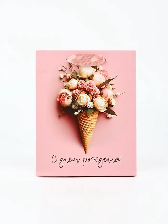 Пакет ламинированный «С Днём рождения», цветы, S 12 х 5.5 х 15 см