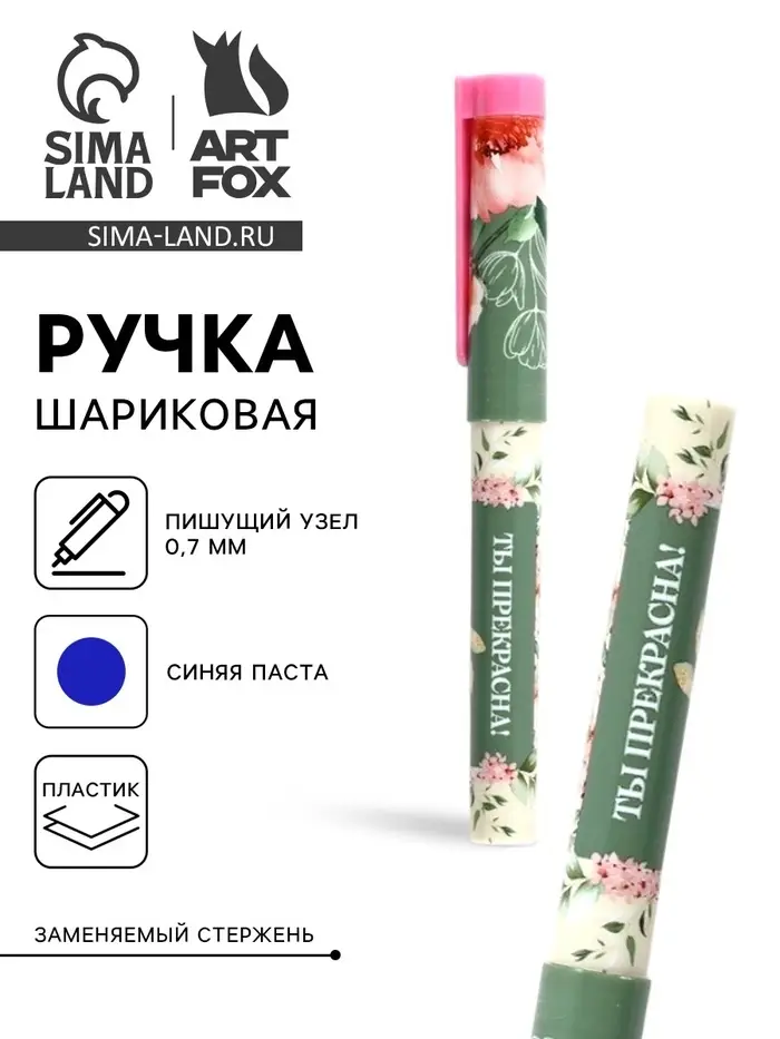 Ручка шариковая, синяя паста, пластиковый корпус с колпачком, 0.7 мм «Ты прекрасна, цветы»