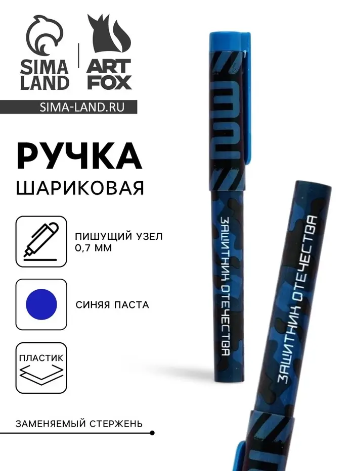 Ручка шариковая пластик с колпачком, синяя паста 0.7 мм «23 февраля: Защитник Отечества»