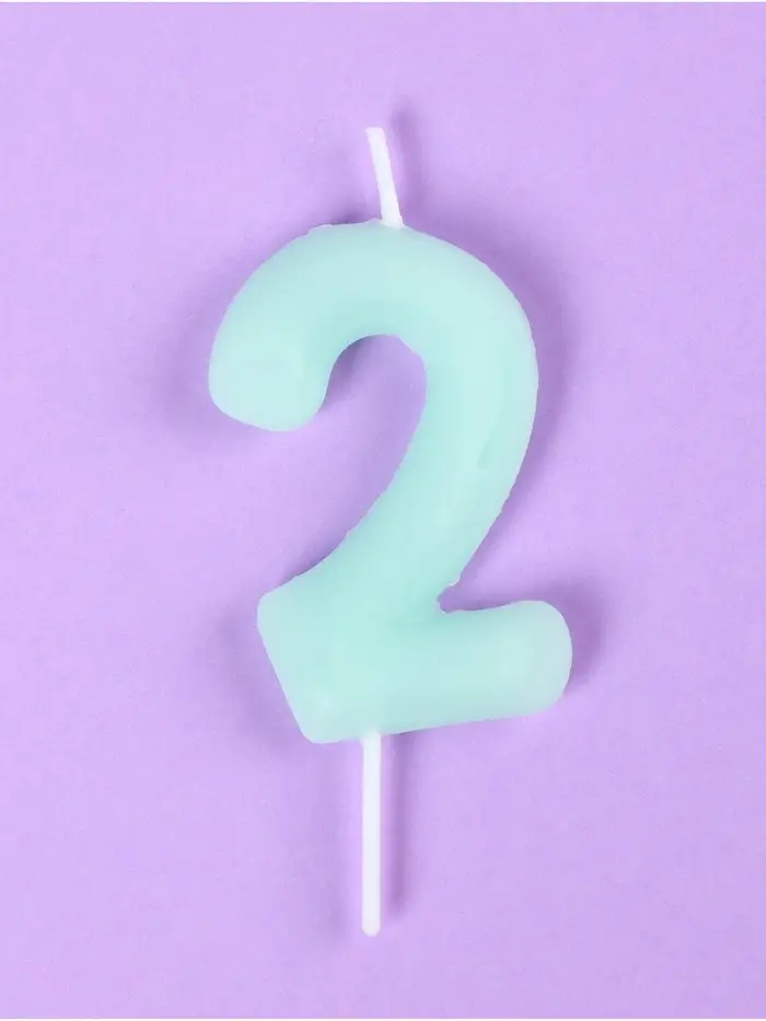 Свеча в торт «Цифра 2», светящаяся голубая, 9 см