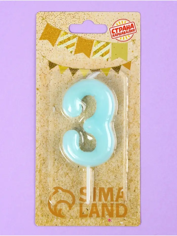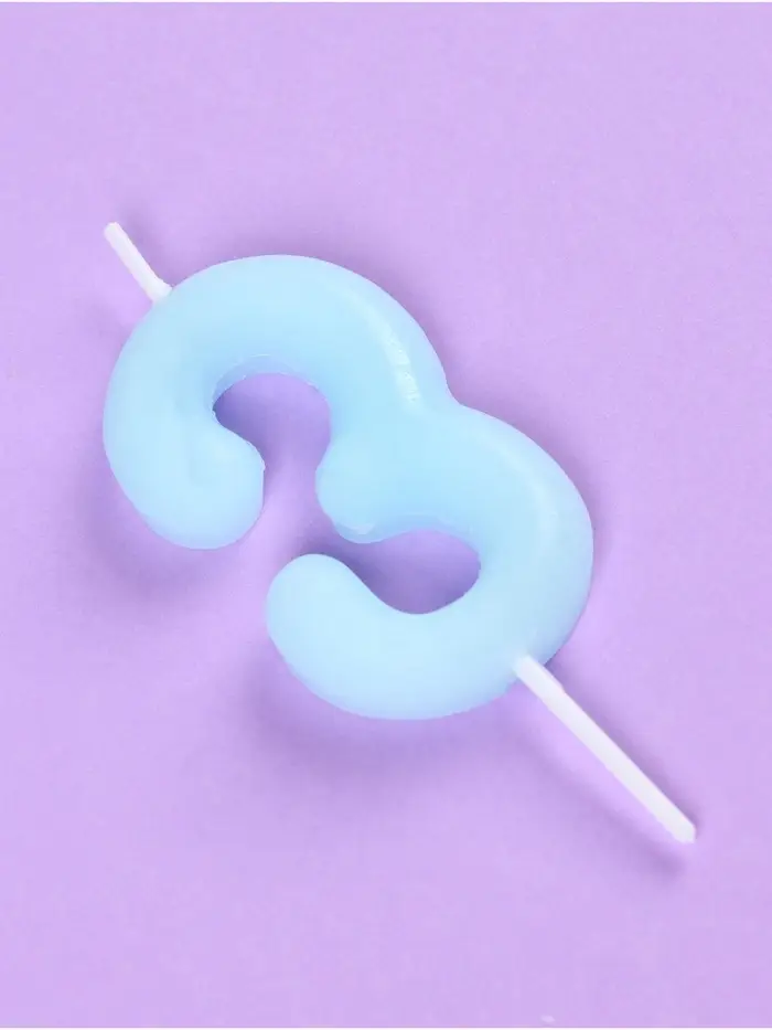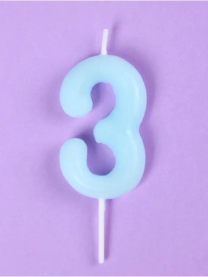 Свеча в торт «Цифра 3», светящаяся голубая, 9 см