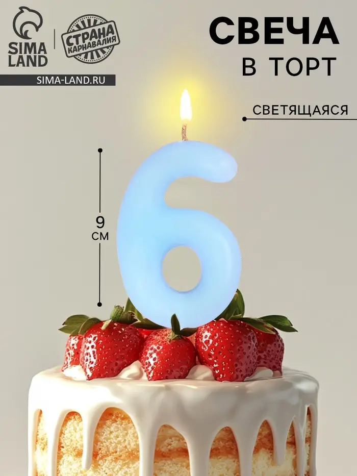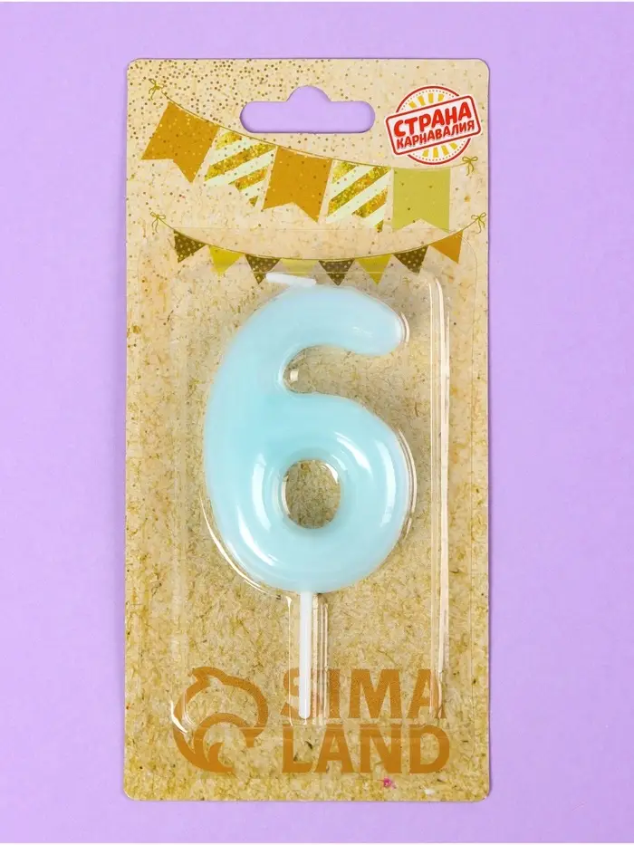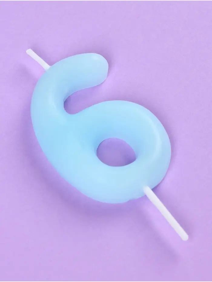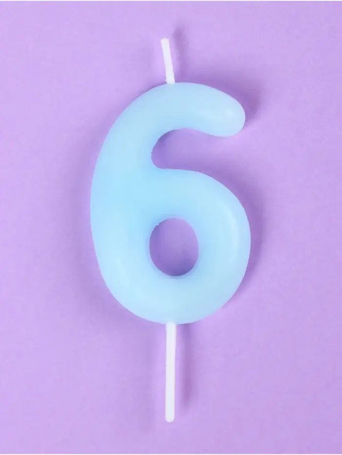 Свеча в торт «Цифра 6», светящаяся голубая, 9 см