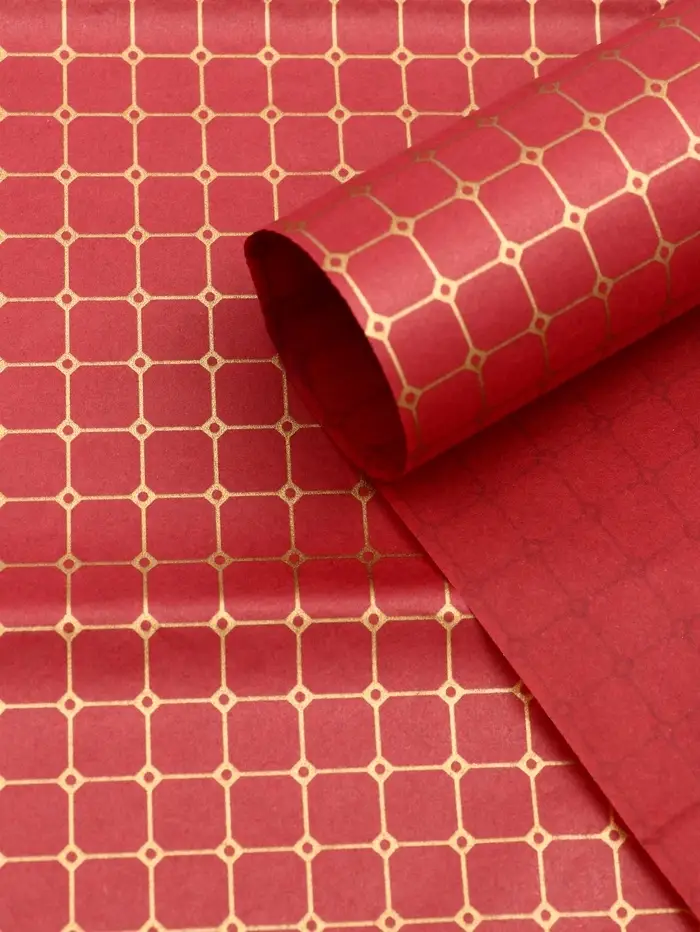 Упаковочная бумага «Шарм» в винном цвете — это элегантный материал для оформления подарков к любому празднику. Её геометрический узор в виде клетки с золотистыми и красными оттенками добавляет подарку изысканности и торжественности, а лёгкая текстура делает её удобной в использовании.