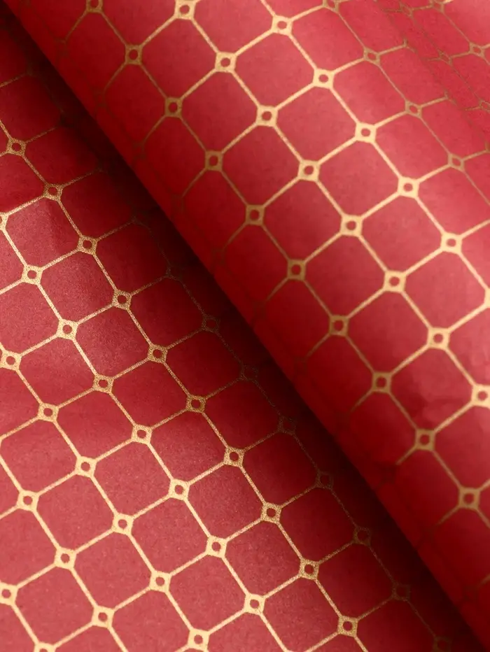 Бумага сочетает в себе роскошь и практичность. Её лёгкая текстура позволяет легко оборачивать подарки, а геометрический узор с золотистыми акцентами добавляет торжественности. Это отличный выбор для тех, кто хочет сделать подарок запоминающимся и элегантным.