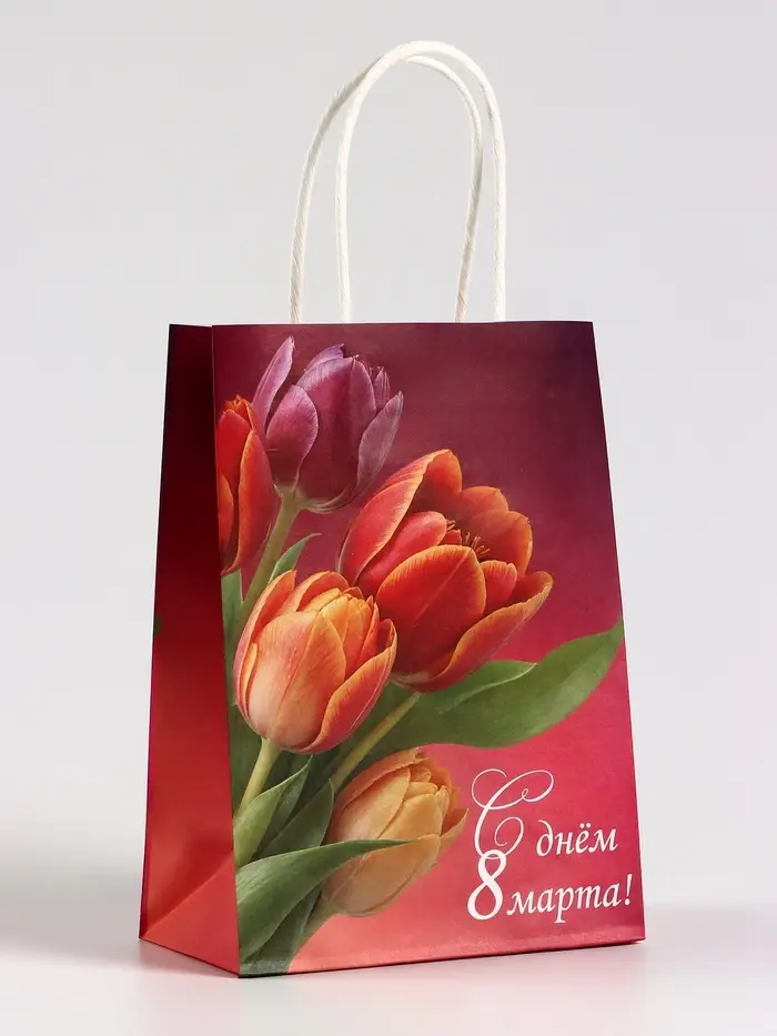 Пакет подарочный крафт, «С 8 Марта!», 15×8×21 см