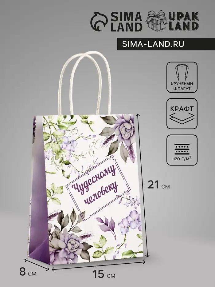 Пакет подарочный крафт, «Чудесному человеку», 15×8×21 см