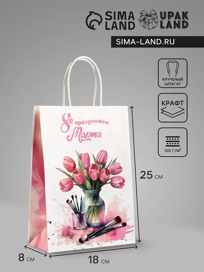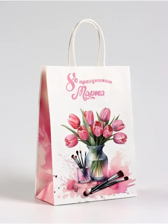 Пакет подарочный крафт, «С 8 Марта!» 18×8×25 см