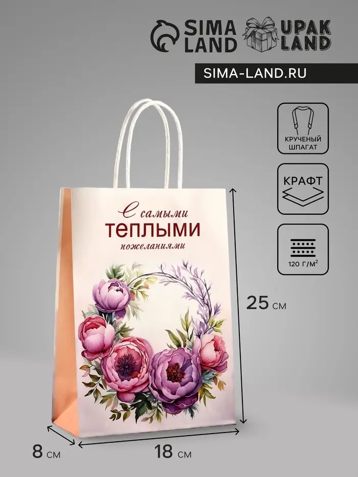 Пакет подарочный крафт, «Самыми теплыми воспоминаниями», 18×8×25 см
