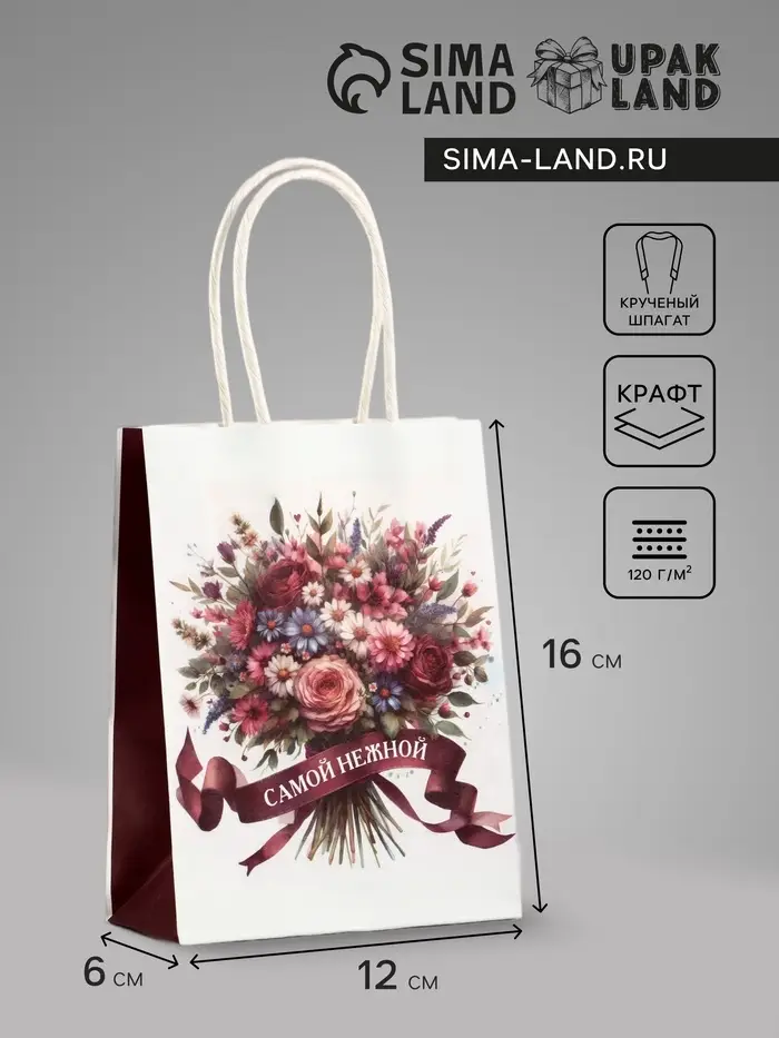 Пакет подарочный крафт «Самой нежной», 12×6×16 см