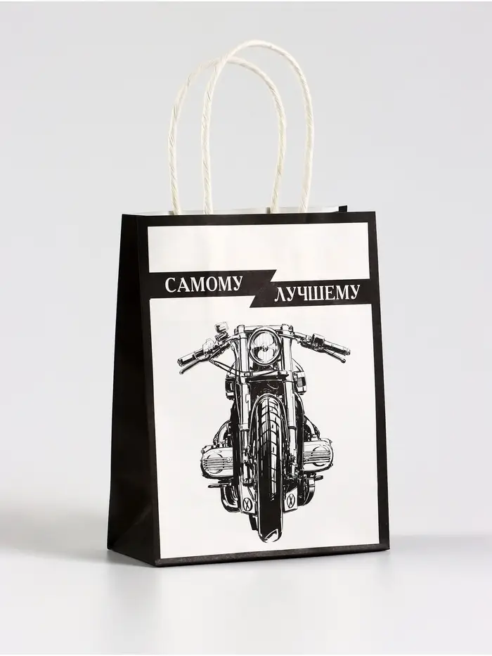 Используйте пакет для упаковки подарков, таких как брелоки, гаджеты, бутылка виски или набор сладостей. Добавьте открытку с тёплыми словами, чтобы подчеркнуть внимание к деталям. Такой пакет станет завершающим штрихом, который подчеркнёт вашу заботу.