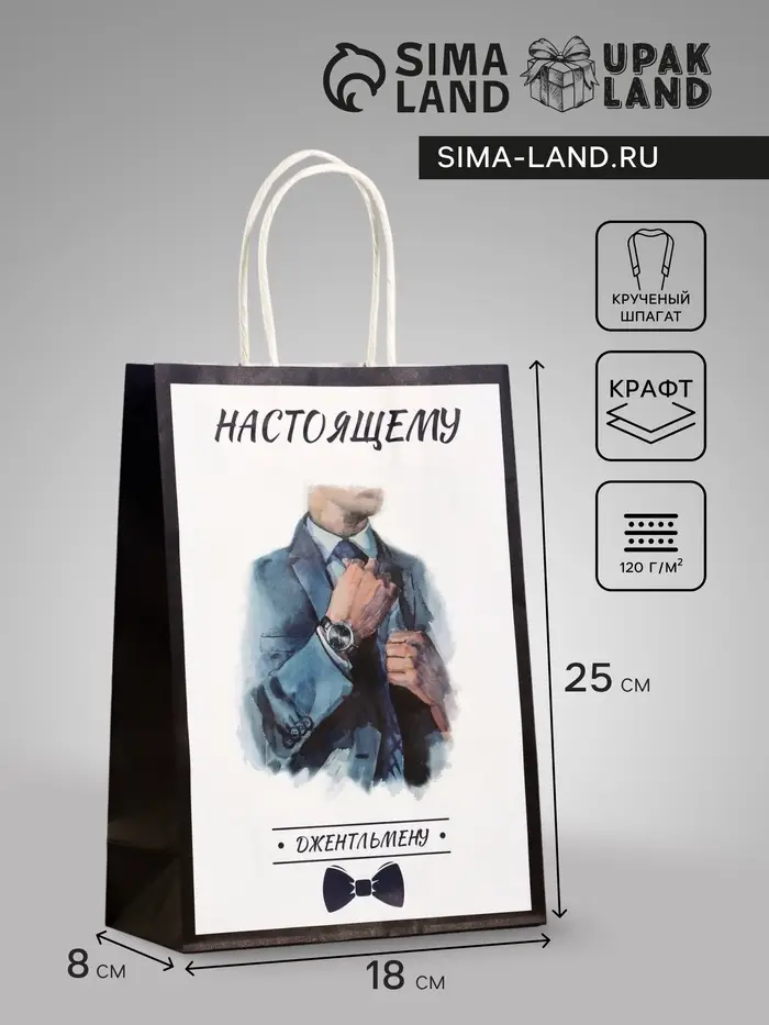 Пакет подарочный крафт «Настоящему джентльмену», 18×8×25 см