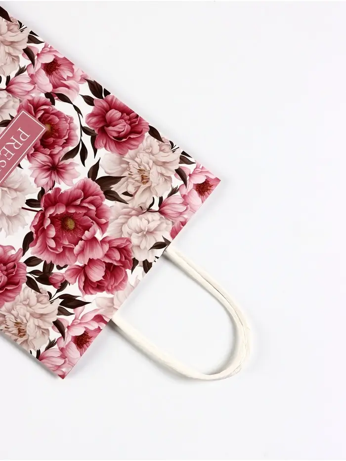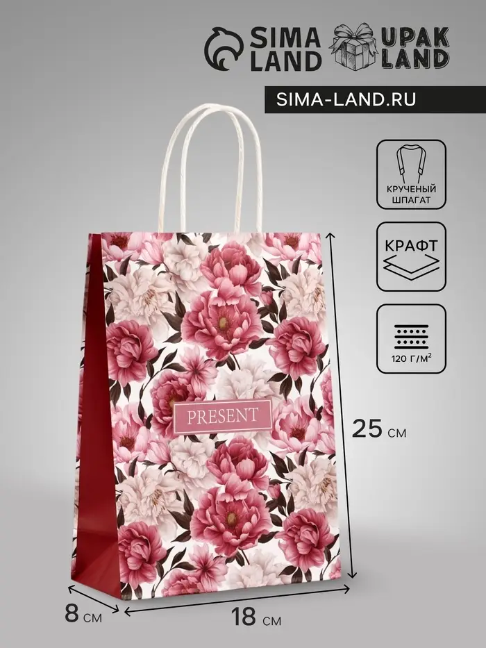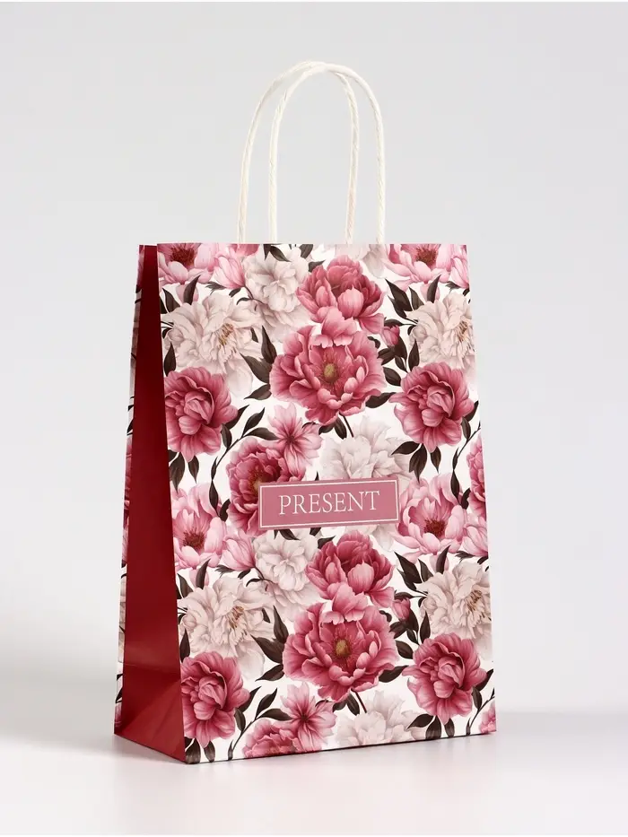 Пакет подарочный крафт «Цветы», 18×8×25 см
