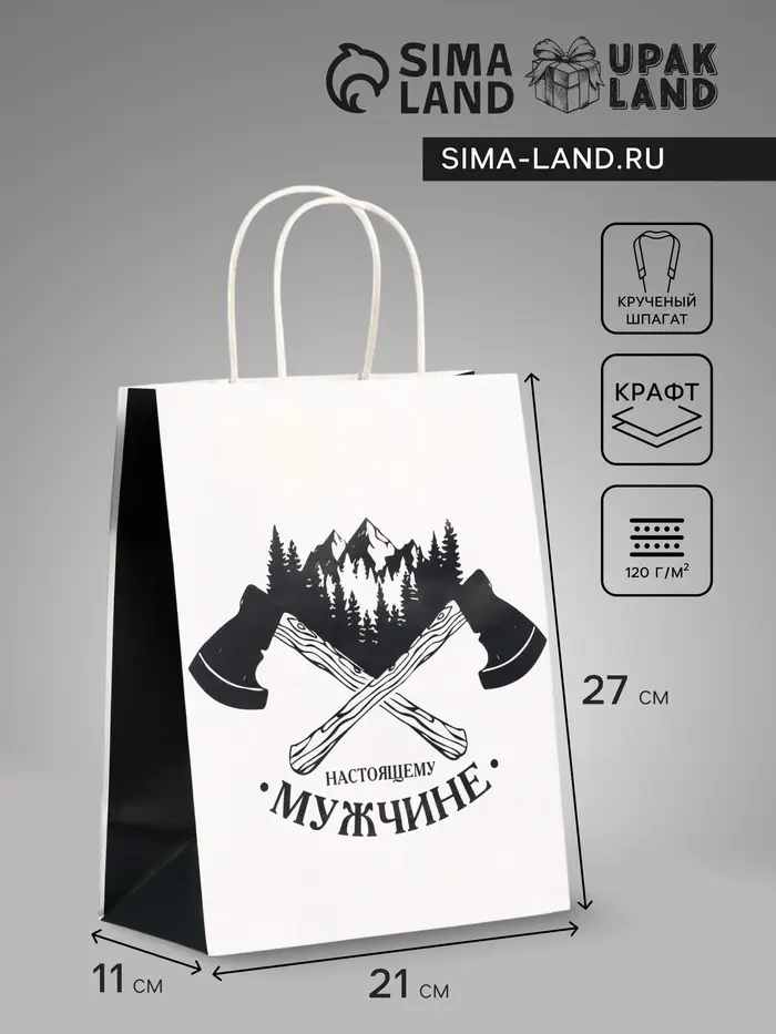 Пакет подарочный крафт «Настоящему мужчине», 21×11×27 см
