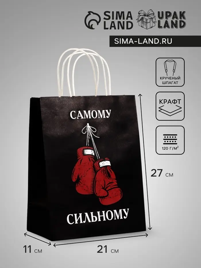 Пакет подарочный крафт «Самому сильному», 21×11×27 см
