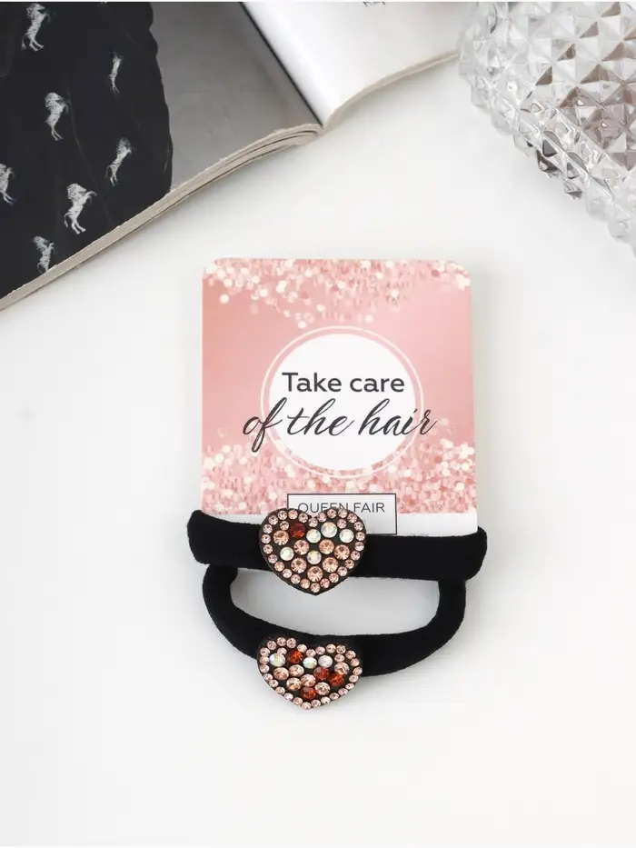 Резинка для волос «Мадлен», набор 2 шт., сердце, 3.5 см, чёрная