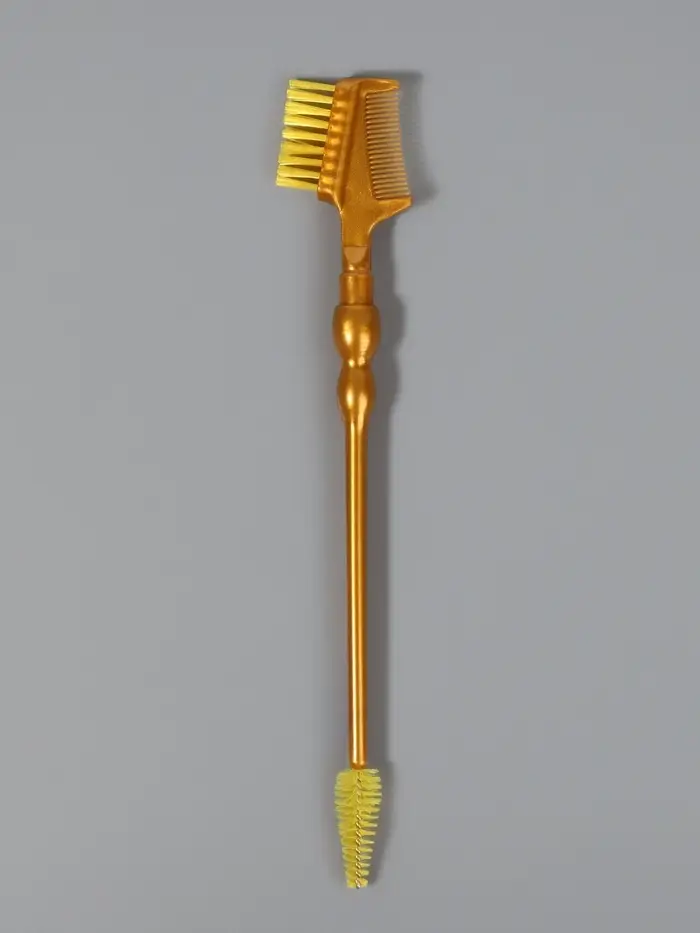Кисть «2в1 для бровей и ресниц» — это многофункциональный инструмент для ежедневной коррекции взгляда. Он сочетает в себе расчёску с частыми зубчиками и щётку с мягкой щетиной, что позволяет работать как с бровями, так и с ресницами. Длина 18,5 см обеспечивает точность и комфорт при использовании. Золотистый цвет добавляет изделию стиля и делает его заметным среди других аксессуаров.