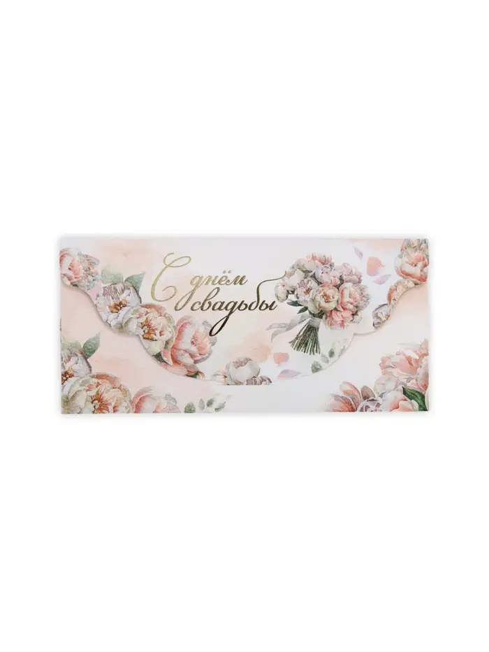 Конверт для денег «С днём свадьбы», акварельный картон, тиснение, конгрев 19 х 9 см
