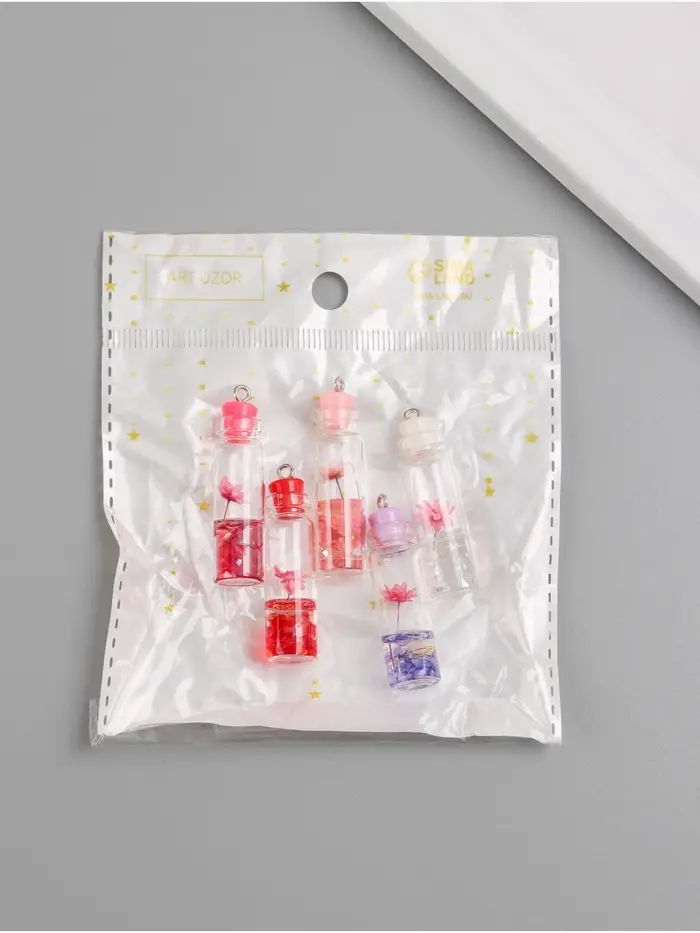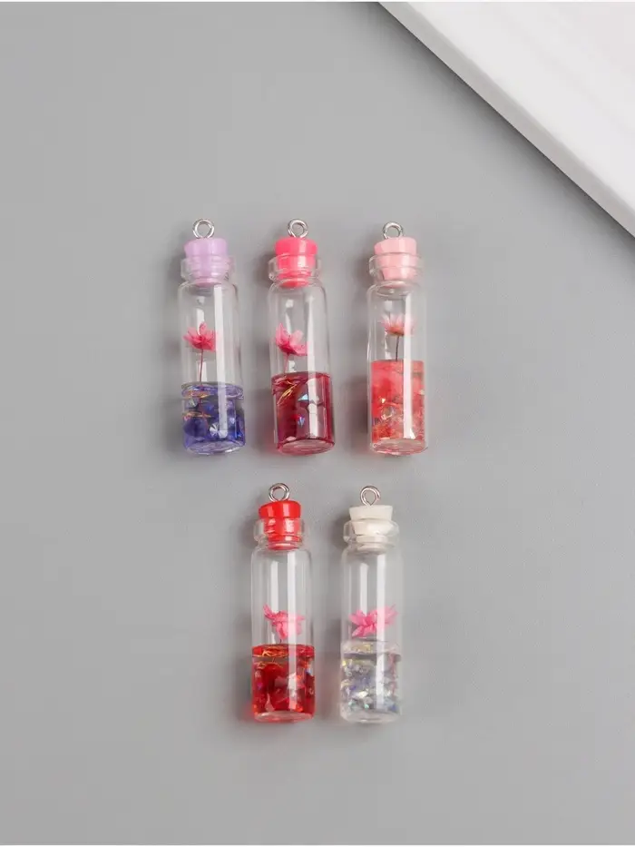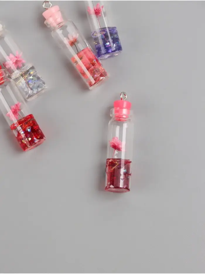 Подвеска для творчества акрил "Бутылочка с цветком" светится в темноте МИКС 1,1х1,1х4,2 см 1071529