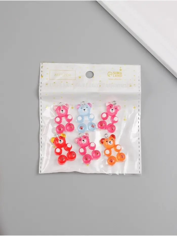 Подвеска для творчества акрил "Мишка леденцовый" МИКС 3,1х2х1 см