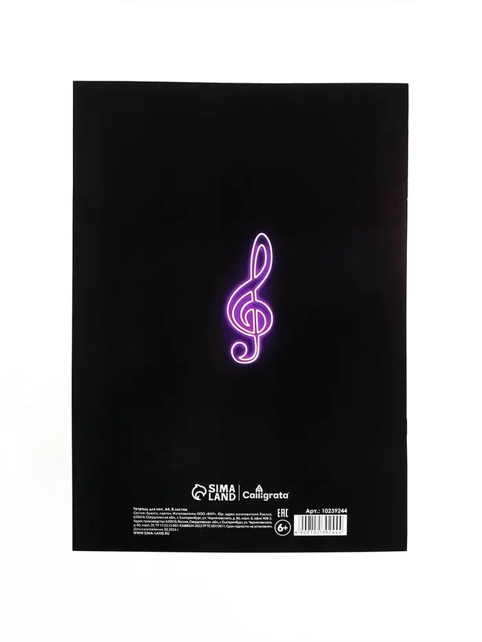 Тетрадь д/нот А4 8л Неоновые ноты
