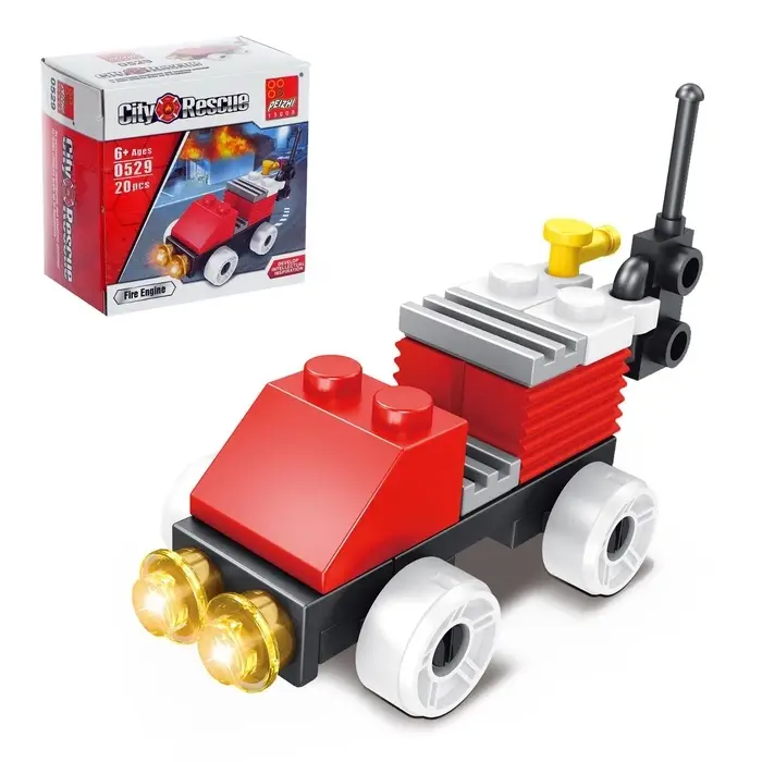 Сигнал тревоги! Пора спасать игрушечный город! Пожарная машина из блоков (20 деталей) — первый транспорт для юного пожарного. За 15 минут сборки ребёнок получит настоящую спецтехнику с узнаваемой раскраской.