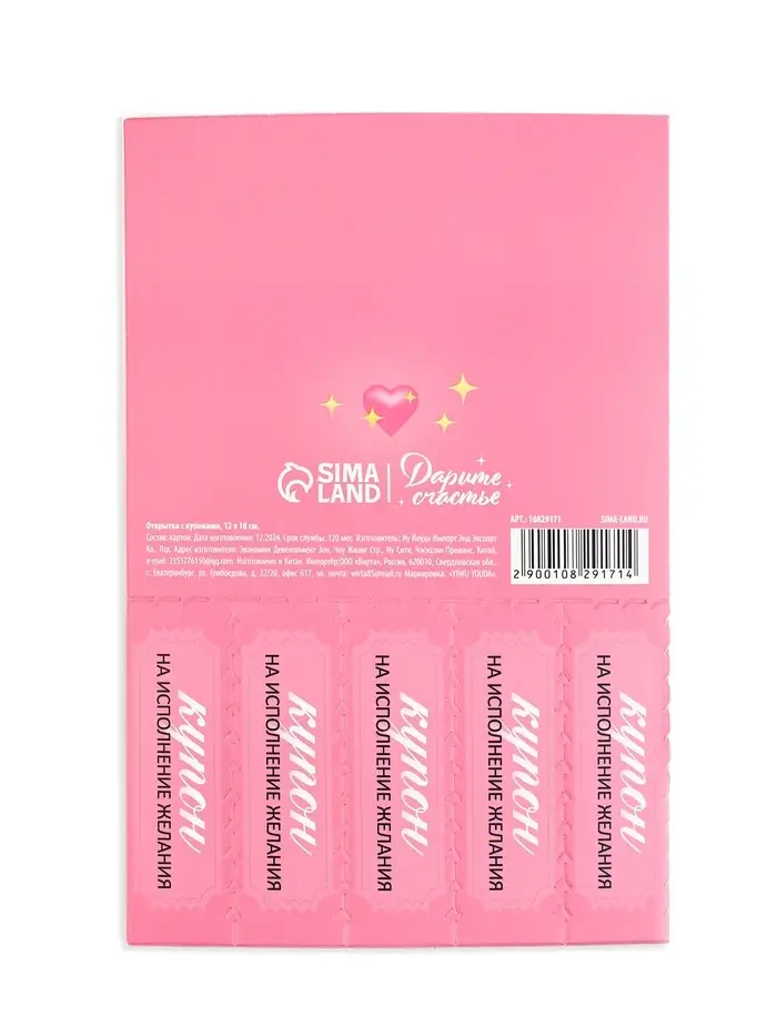 Открытка с купонами «Любимой подружке», 12 х 18 см